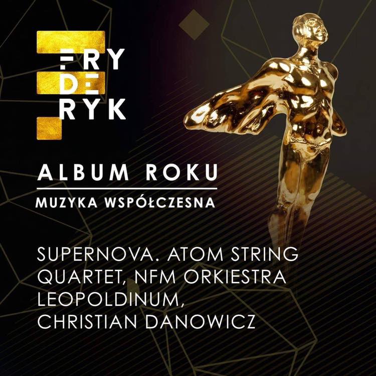 Miło mi poinformować, że płyta SUPERNOVA nagrana wspólnie przez Atom String Quartet i NFM Orkiestra Leopoldinum otrzymała Fryderyka w kategorii „Album Roku – Muzyka Współczesna”!!!